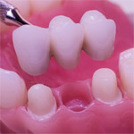 A permanent solution for one or more lost tooth. As the name suggests, Fixed partial dentures or FPD are tooth replacements that are fixed permanently in the mouth and cannot be removed for routine cleaning by the patient. These dentures are made by taking support from adjacent natural teeth. Unfortunately these dentures can replace only a few missing teeth. When a large number of teeth are missing, the treatment option would be either Implants or Removable partial denture or RPD. Fixed partial dentures are of various types. They are made of either porcelain ( Ceramic) or metallic alloys. The metallic FPD's are made of either gold alloys or chrome cobalt alloys. In case of tooth loss, crown and bridge treatment may also be the right restorative option for you. This long-term solution can help prevent the cycle of problems that can occur when just one tooth is missing, such as shifting of the remaining teeth, decay, and periodontal disease and bone loss. A very badly damaged tooth may be difficult or impossible to restore to correct form and function using a direct dental restorative material such as amalgam or dental composite. In such cases we apply crown and bridge treatment. A crown - sometimes called a "cap" - is a tooth-like covering placed over a carefully prepared existing tooth. It is used to strengthen, restore or improve the appearance of your natural tooth. The crown or "cap" fits over a carefully prepared existing tooth. Single crowns are advised when a large portion of the tooth has been damaged by decay. Crowns are made up of precious metal alloy, semiprecious metal alloy, porcelain, or a reinforced aluminosilicate-type ceramic system such as Procera.